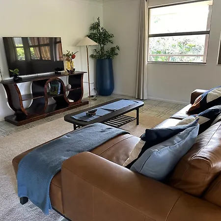Die Amongst The Trees verfügt über eine sonnige Terrasse mit Blick auf den Garten und ist 32 Autominuten vom Flughafen Sunshine Coast entfernt gelegen.